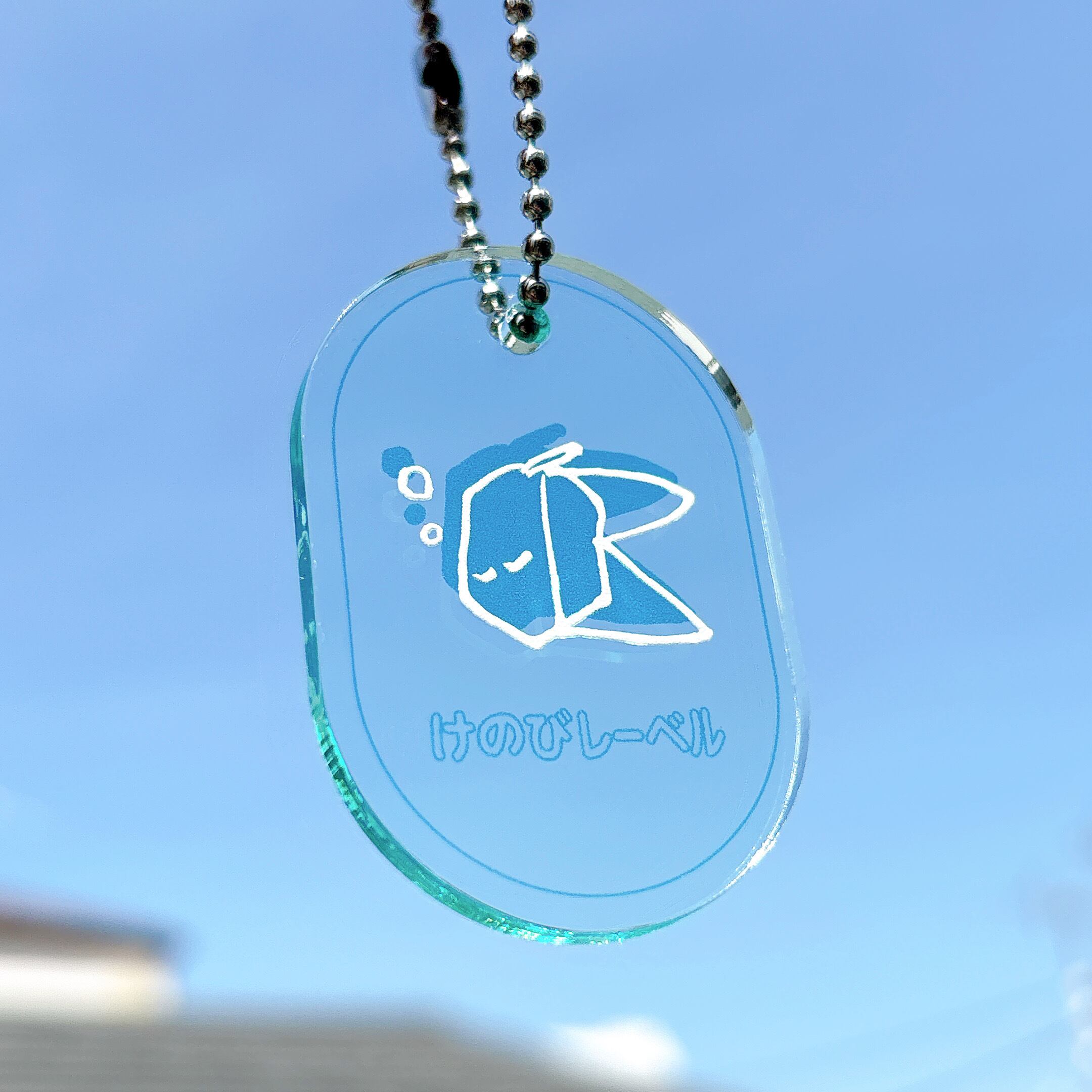 ガラス色の海を泳ぐ、けのびチャンのアクリルキーホルダー(ボールチェーン付)。