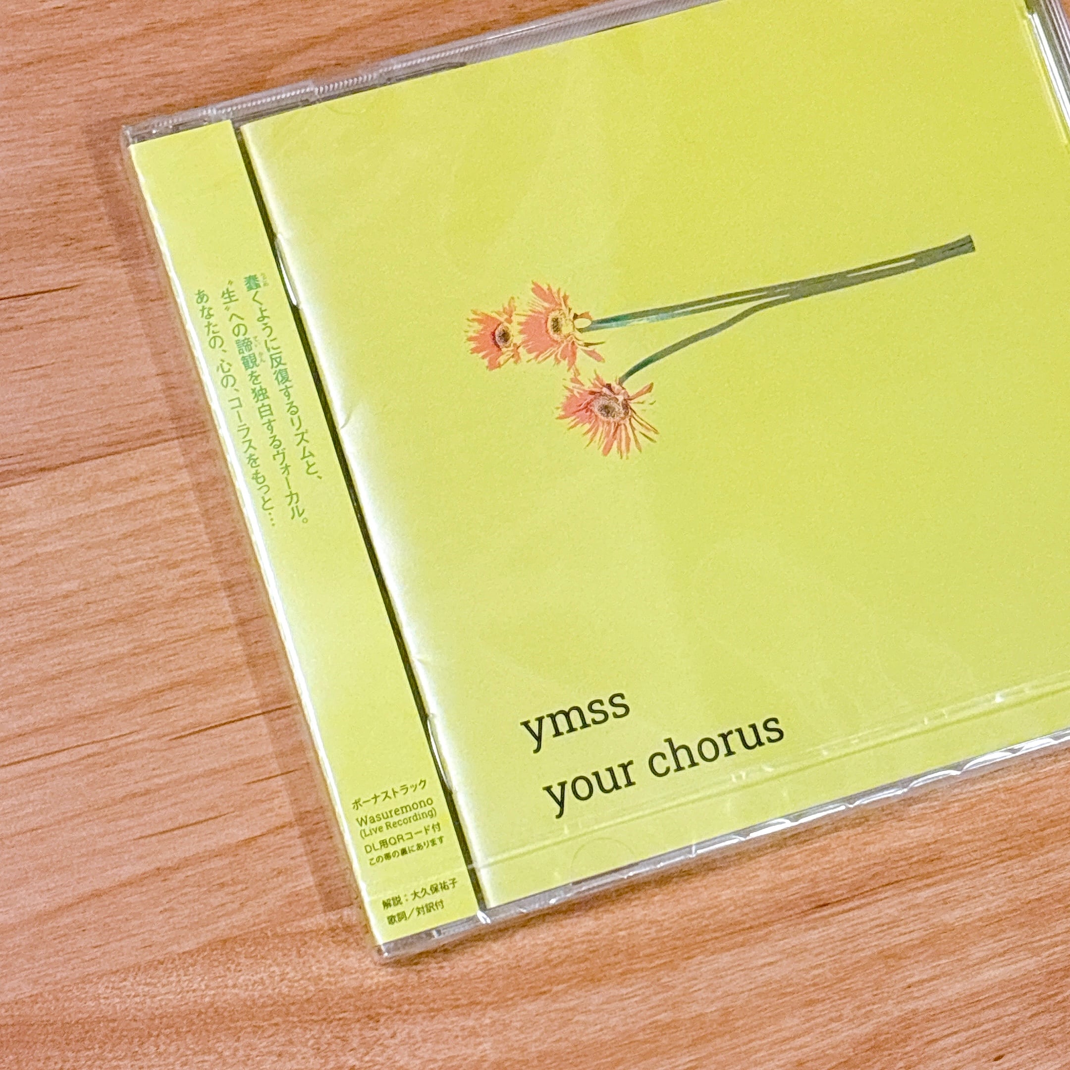 さらに歌詞カードには、ymssと親交の深い音楽ライターの大久保祐子さんの解説も付いていて、読んでから音源を聴くと魅力がより引き立つような、素敵な文章になっています。サブスク未収録のボーナストラックは、今後ymssの重要曲になっていくであろう名曲”Wasuremono”のライブ音源で、アルバムの余韻を増幅させてくれます。松本健志さんによる、余白を残したアートワークとデザインは、音数を削ぎ落としたymssの音楽性にマッチしていて、一般的には元気な色である黄色が、不思議ともの寂しさを引き立てています。